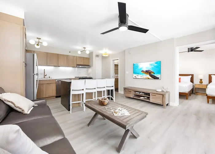 The Ala Wai Canal is 2.2 km from this 1-bedroom apartment, while the calm - water Kuhio Beach Park is around 800 metres away. The upscale shopping district|upscale shopping is 25 minutes on foot from the property.